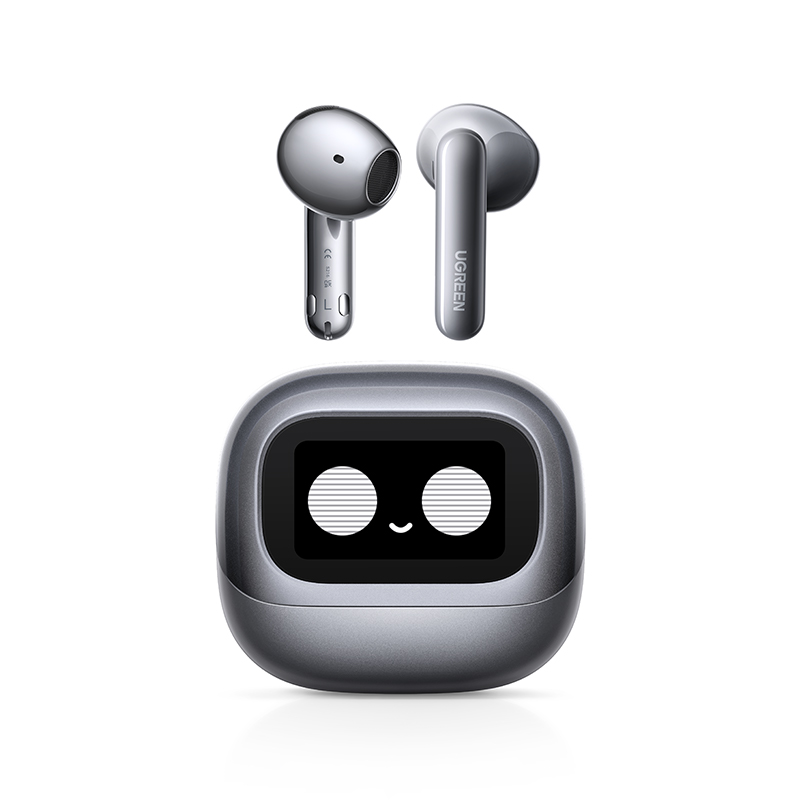 Главной особенностью беспроводных наушников UGREEN HiTune H6 Magic WS216 является зарядный кейс с полноцветным сенсорным дисплеем. Он не только показывает уровень заряда, время и статус подключения, но ипозволяет управлять музыкой, переключать режимы активного шумоподавления, выбирать настройки, менять обои.