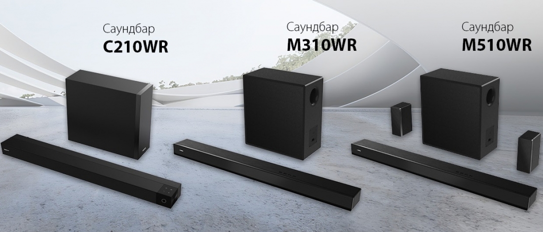 Компания Toshiba официально запустила продажи новых саундбаров Toshiba C210WR, Toshiba M310WR и Toshiba M510WR в России. Устройства совместимы со всеми актуальными моделями ТВ-панелей Toshiba, они также работают от одного пульта с телевизорами.
